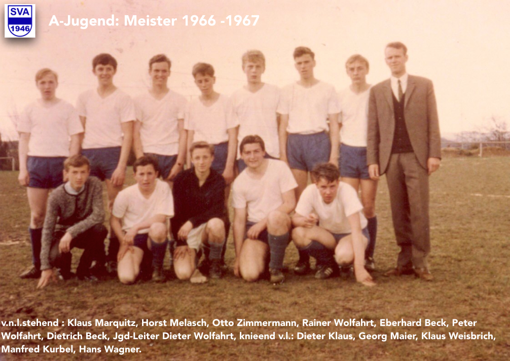 In der Saison 1966 – 1967 sowie 1967- 1968 konnte sich die A-Jugend wieder zur Meisterschaft spielen. Hier haben wir ein Foto dieser Mannschaft gefunden. Die Meisterschaften der C-Junioren sowie der A-Junioren waren wieder ein Beweis der sehr guten Jugendarbeit des SVA.