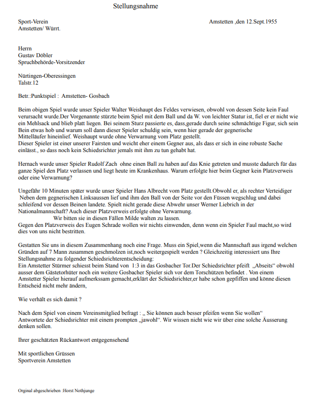 Die erbetene Stellungnahme: Ein Ordner mit historischen Dokumenten birgt oft Kurioses. Wir haben ein Schreiben an die Spuchbehörde gefunden in dem der...