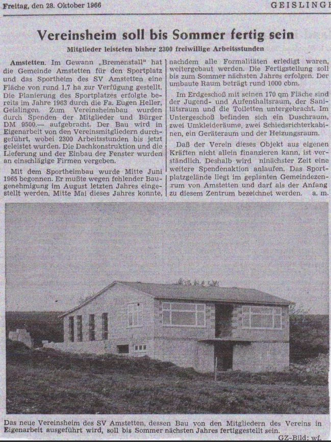 Baubeginn des neuen Sportheims: was schon lange beschlossen wurde nun Realität. Am 23.05.1965 wurde mit den Arbeiten am neue...