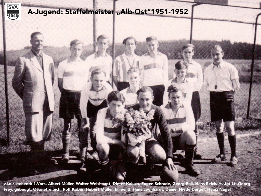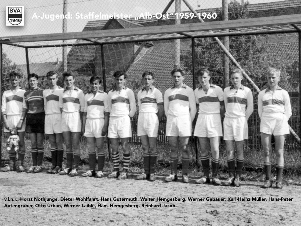 Meister Staffel Alb-Ost 1959-1960: nach einigen Jahren ohne Titel war es dann wieder die A-Jugend die dem SVA eine Meisterschaft sicherte. Das Team gewann gegen Dornstadt mit 5:1. Ein Zeitungsbericht liegt leider keiner vor.