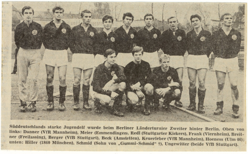 Wir möchten Euch eines nicht vorenthalten das 1967 der Amstetter Dietrich Beck bei der Süddeutschen Jugendauswahl mitspielen durfte. Sensationell wenn man bedenkt welche Namen aus welchen Vereinen hier als Mitspieler dabei waren.