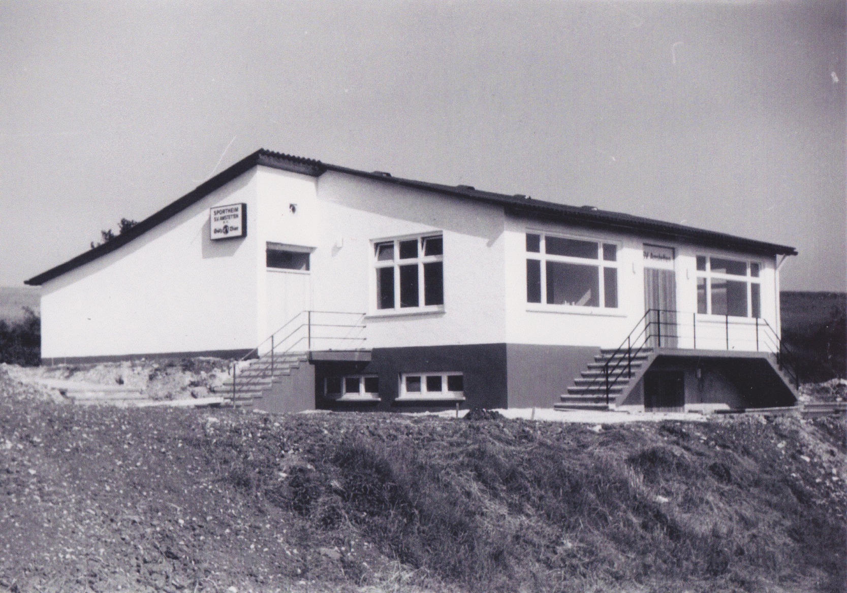 Baubeginn des neuen Sportheims: was schon lange beschlossen wurde nun Realität. Am 23.05.1965 wurde mit den Arbeiten am neuen Sportheim begonnen. Viele Sportler und freiwillige Helfer packten mit an. Es wurden nur Arbeiten an Unternehmen vergeben die nicht selber gemacht werden konnten um Geld zu sparen. In Handarbeit und Schubkarren wurden die ganzen Betonierarbeiten durchgeführt. Das Wasser wurde in einem Wasserfass bereitgestellt. Erst später erfolgte der Wasseranschluß. Erschwerend kam hinzu, das während der Bauzeit keine Stromversorgung vorhanden war. Erst im Mai 1967 wurde das Sportheim angeschlossen. Zwischen Weihnachten und Neujahr 1966 installierte Gerhard Hiller eine Beleuchtung aus Autolampen mit Batterie-Anschluss im Untergeschoss. Erwin Spieth führte dann die kompletten Plattenlegearbeiten in den Duschräumen durch. Abschließen möchten wir den Baufortschritt mit zwei sehr interessanten Zeitungsartikeln und einer kleinen Foto-Galerie.