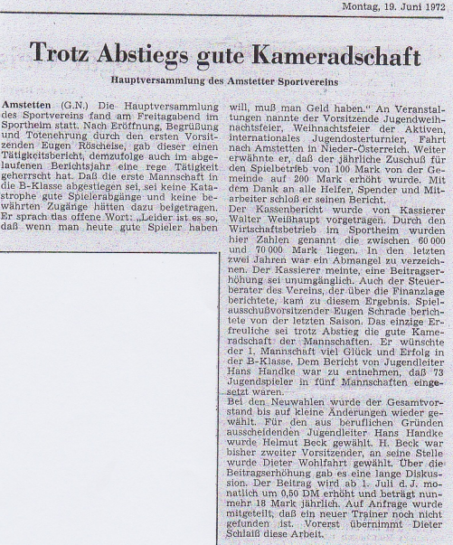 1972 – Trotz Abstiegs gute Kameradschaft